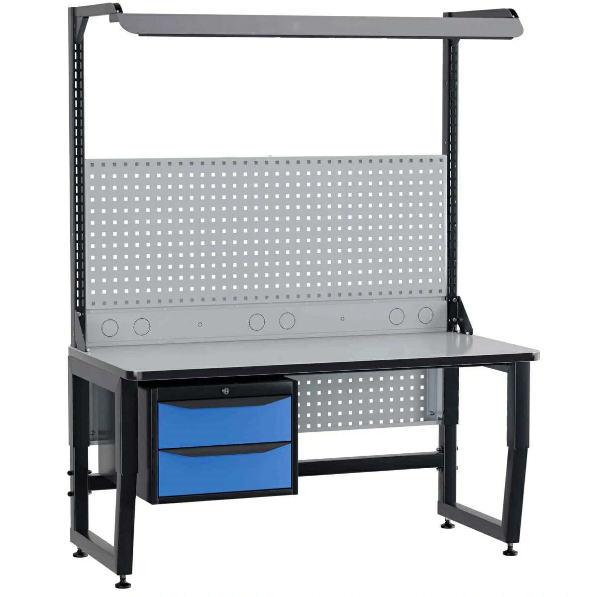 - Столешница: основа — МДФ (30 мм), поверхность — сертифицированный ESD‑пластик (1 мм), нижняя часть — БСП‑пластик (1 мм), кромка — ABS‑пластик (2 мм).