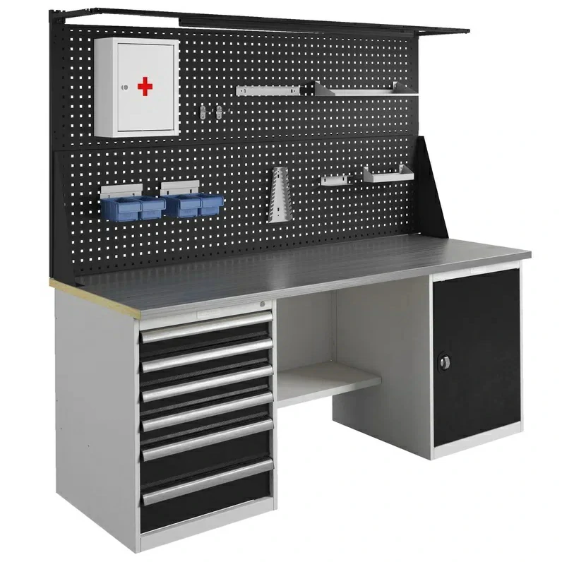 - Устойчивость. Верстаки имеют широкое основание и низкий центр тяжести, что предотвращает их опрокидывание при больших нагрузках.Некоторые модели могут быть оснащены специальными системами фиксации или замками, которые помогут предотвратить неожиданное движение.