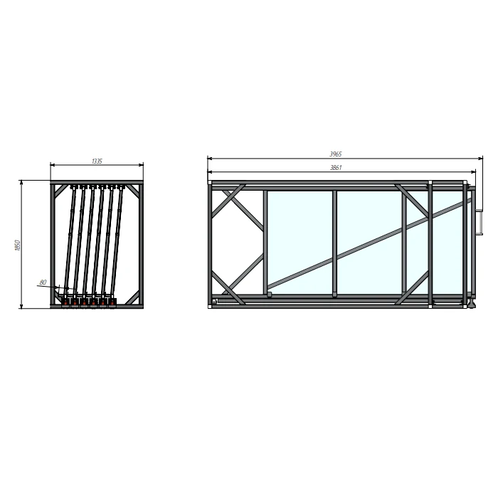 - Габариты стеллажа в закрытом/открытом положении (В*Ш*Г): 1850*1335*3965/7024 мм