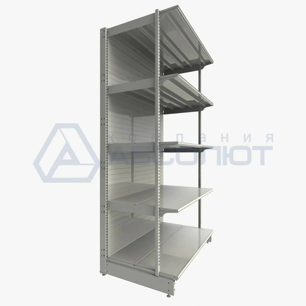 Стеллаж усиленный с дополнительной передней стойкой 2250-1250-700, 5 полок от компании Абсолют предназначен для размещения товаров более тяжелых товаров в магазинах и супермаркетах любого формата и товарных групп.