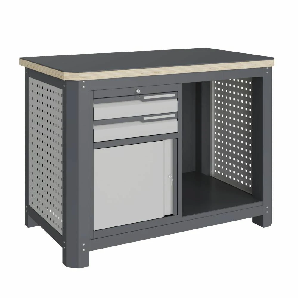 - Модуль верстака выполнен сварными. Ящики в модулях устанавливаются на шариковых телескопических направляющих полного выдвижения.
