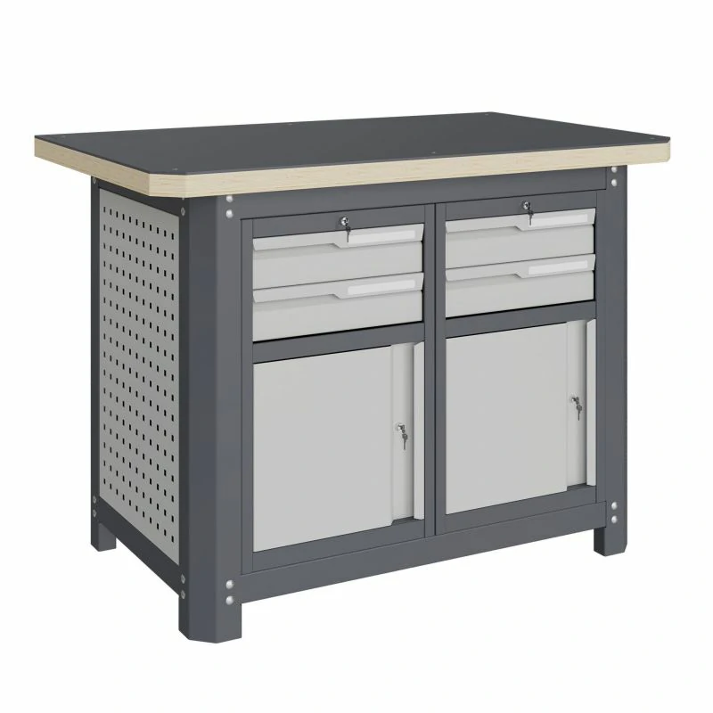 - Модуль верстака выполнен сварными. Ящики в модулях устанавливаются на шариковых телескопических направляющих полного выдвижения.