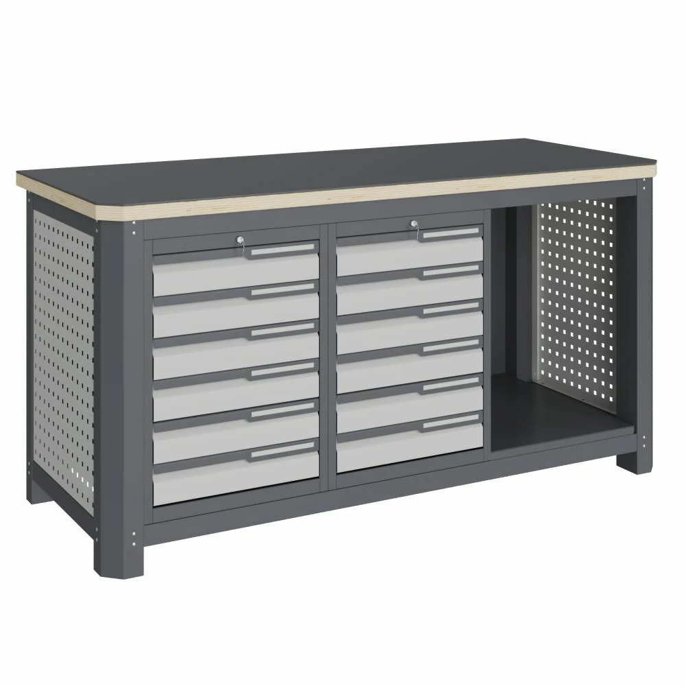 - Модуль верстака выполнен сварными. Ящики в модулях устанавливаются на шариковых телескопических направляющих полного выдвижения.