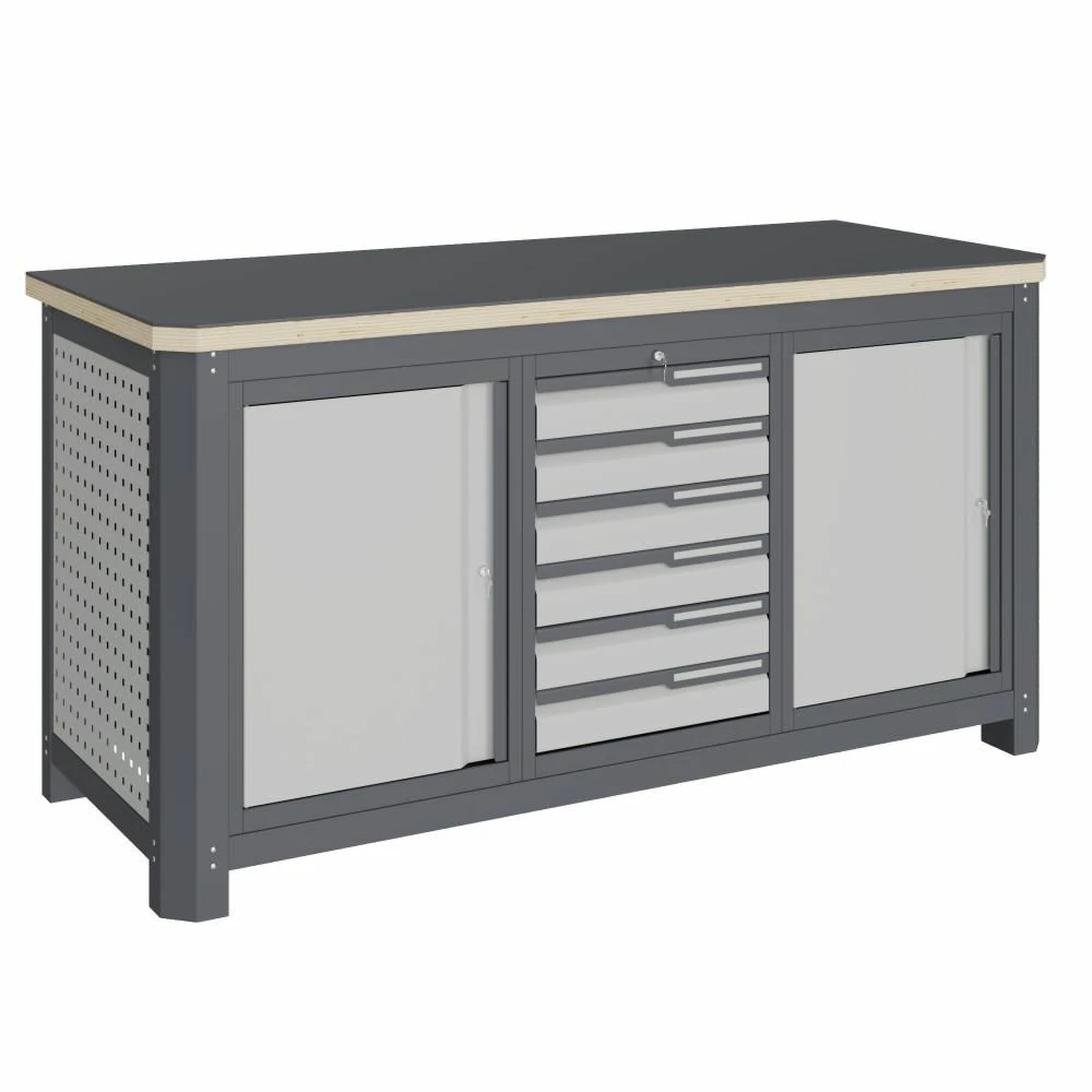 - Модуль верстака выполнен сварными. Ящики в модулях устанавливаются на шариковых телескопических направляющих полного выдвижения.