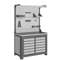 - Квадратная перфорация на боковых элементах верстака предназначена для установки крючков, держателей и других аксессуаров, имеет размеры: квадрат 12х12 мм. шаг 38 мм.