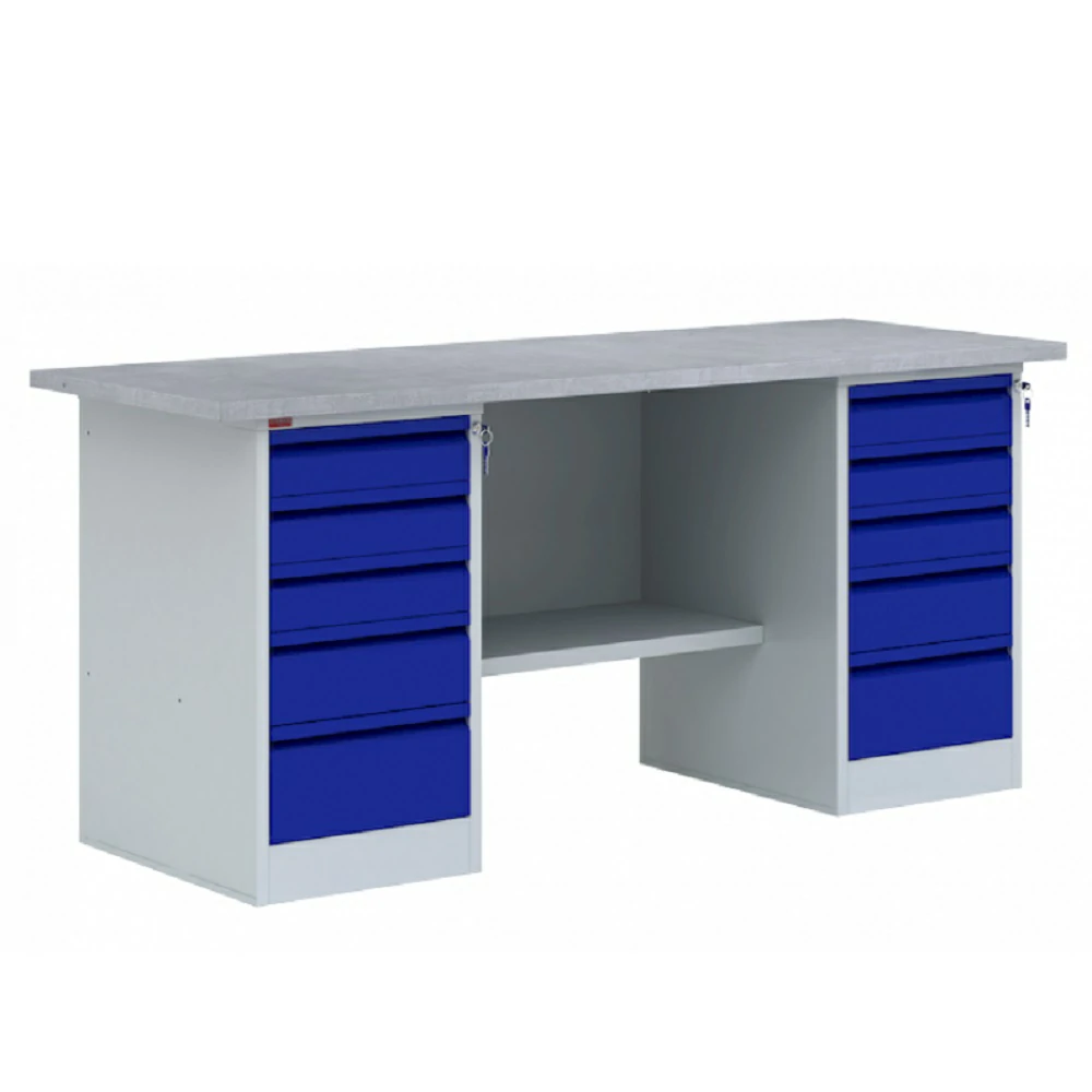 - две тумбы верстачные Т - 2 с пятью выдвижными ящиками (нагрузка 30 кг), запирающимися на общий замок,