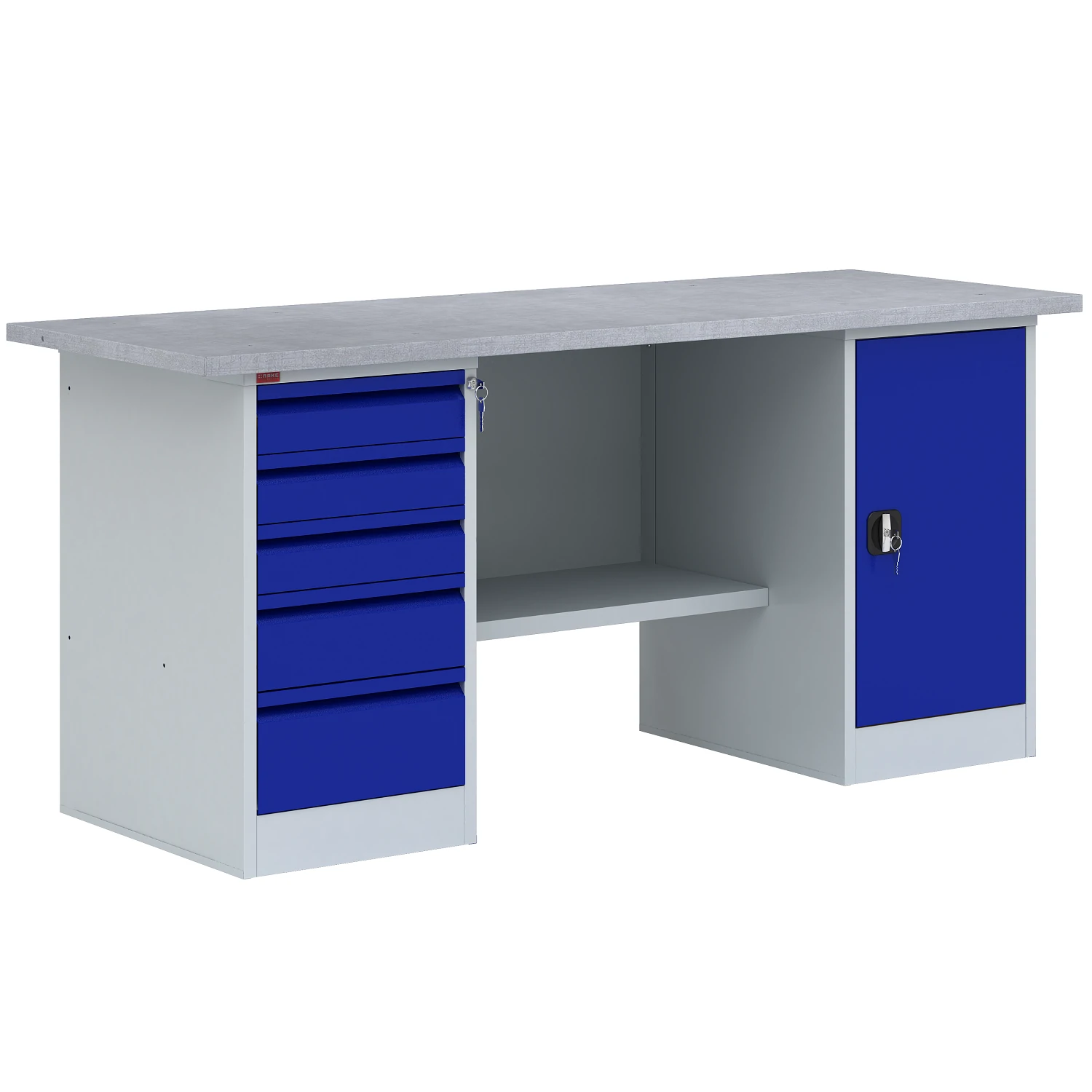 Верстак ВП-4, металлический, длина столешницы 1600 мм, с драйверами предназначен для выполнения слесарных работ дома, на крупном производстве, в автомастерской, гараже или учебном классе.