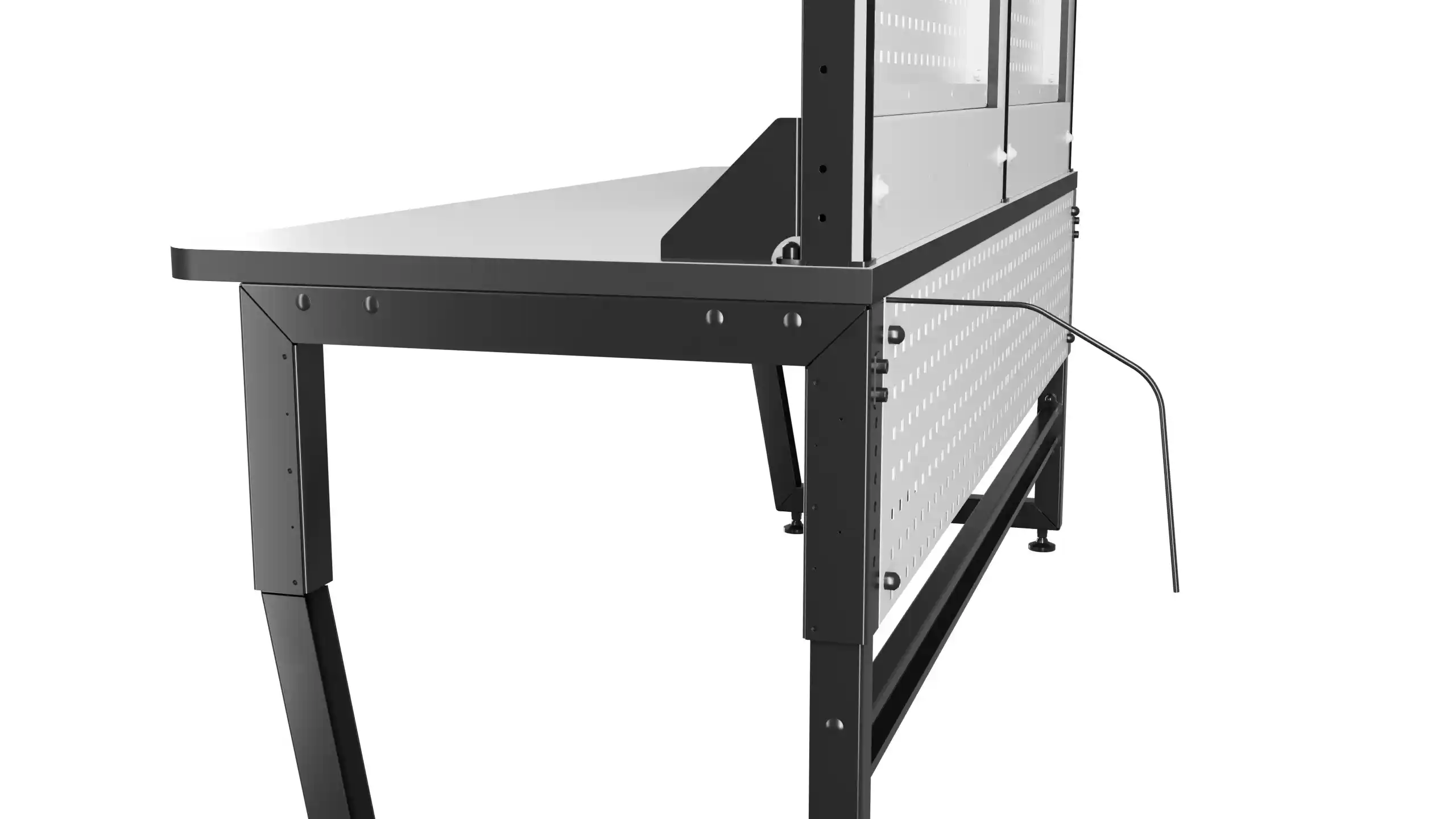 - Столешница: основа — МДФ (30 мм), поверхность — сертифицированный ESD‑пластик (1 мм), нижняя часть — БСП‑пластик (1 мм), кромка — ABS‑пластик (2 мм).