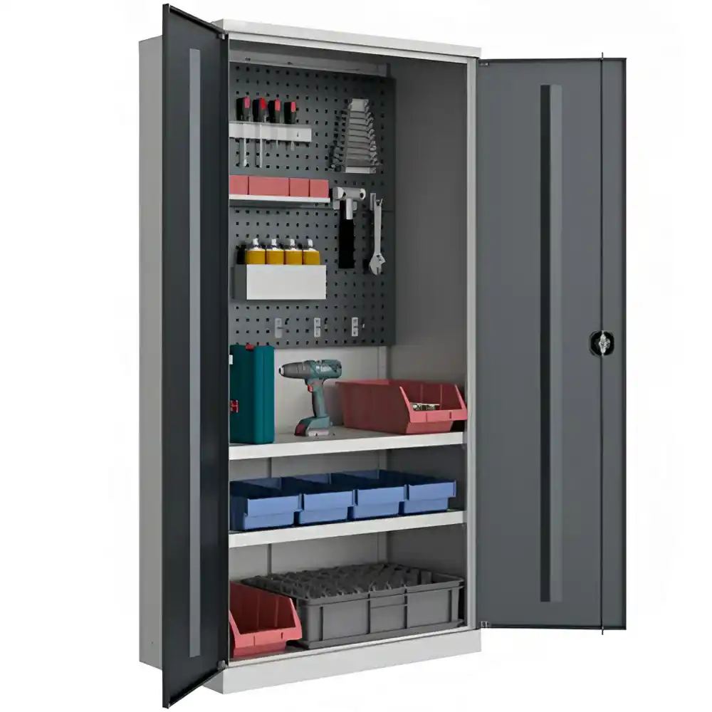 Шкаф инструментальный TS-052-02 для производственных предприятий, ремонтных мастерских, гаражей и т.д. Используется для хранения инструмента и оснастки. Внутреннее наполнение шкафа комплектуется по желанию Покупателя.