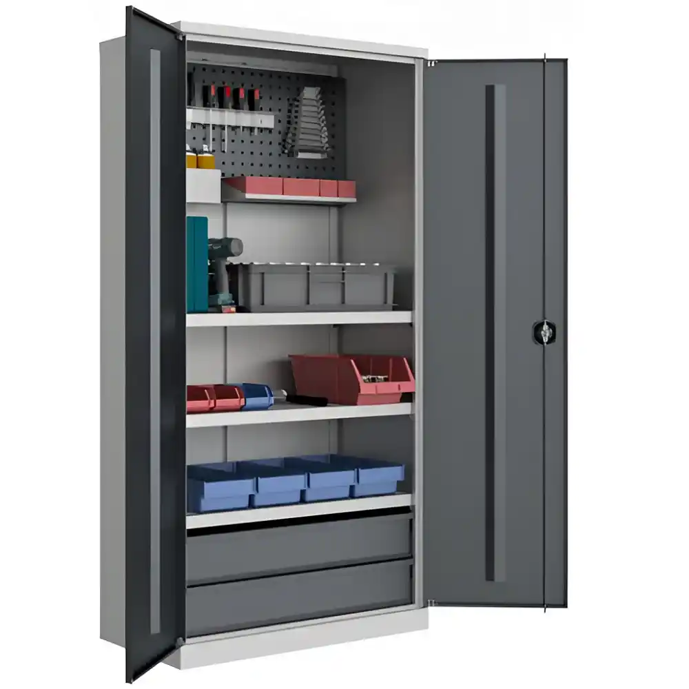 Шкаф инструментальный TS-052-04 для производственных предприятий, ремонтных мастерских, гаражей и т.д. Используется для хранения инструмента и оснастки. Внутреннее наполнение шкафа комплектуется по желанию Покупателя.
