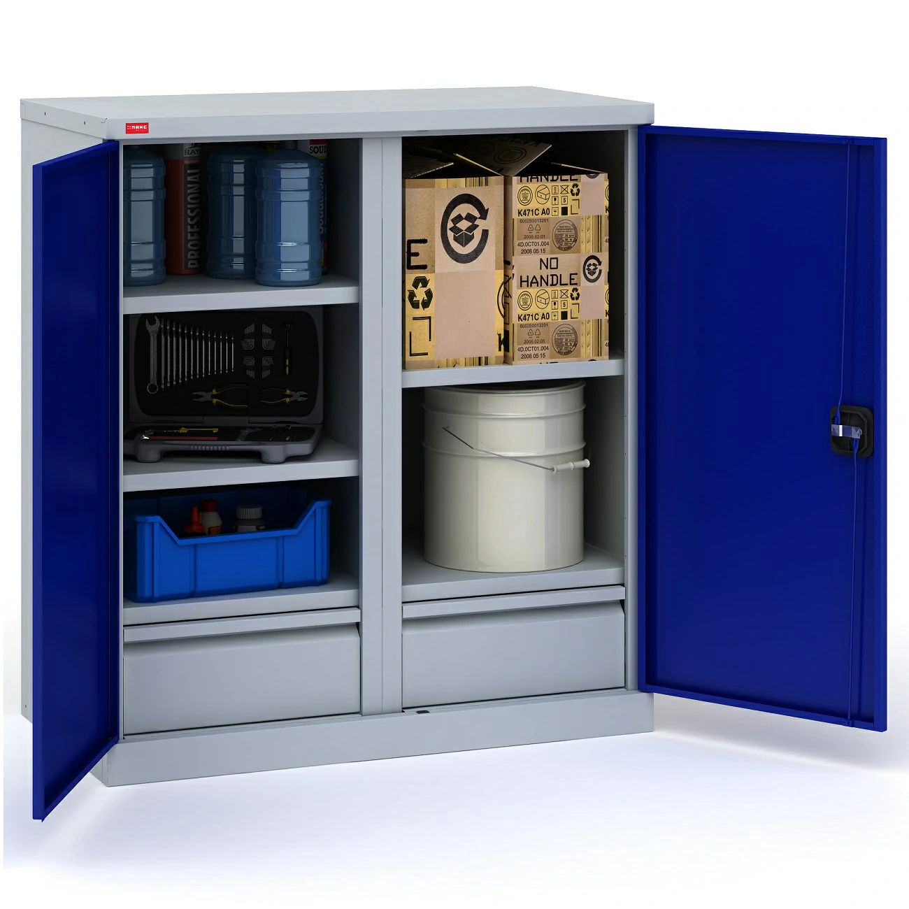 Шкаф инструментальный ИП-2-0.5/2 предназначен для хранения инструментов, разнообразных личных приспособлений и оснастки в мастерских, цехах и различных производственных помещениях.