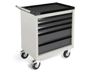 - Тележка укомплектована лотком с противоскользящим ковриком и эргономичной ручкой,