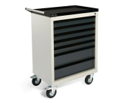 - Тележка укомплектована лотком с противоскользящим ковриком и эргономичной ручкой,