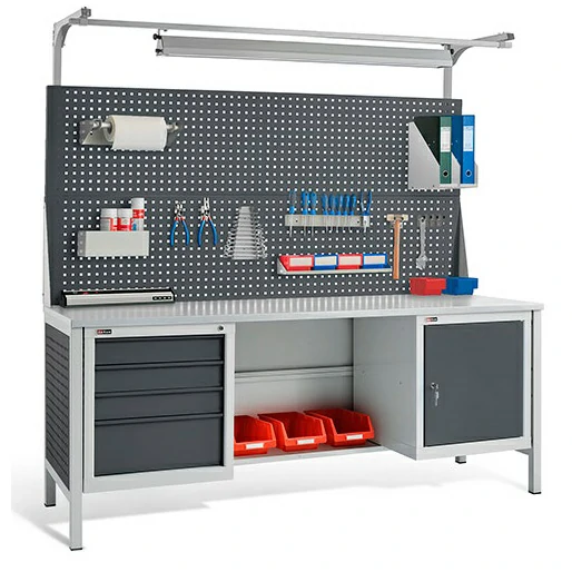 Металлические верстаки могут быть оснащены дополнительными элементами: ящиками для инструментов, экранами, освещением, что позволяет организовать рабочее пространство более эффективно. Они также легко выдерживают различные механические и химические воздействия, что увеличивает их срок службы.