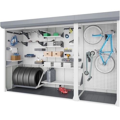 Модульная система хранения с двумя независимыми роллетами.- Конструкция с типоразмерами от 2200 мм до 4300 мм в длину, от 1500 мм до 2300 мм в высоту, от 600 мм до 1200 мм в глубину.