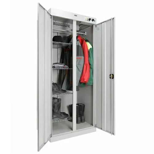 - Вместительность. Глубина шкафов ШС позволяет сушить объемные вещи, в том числе спецовки и зимние куртки.