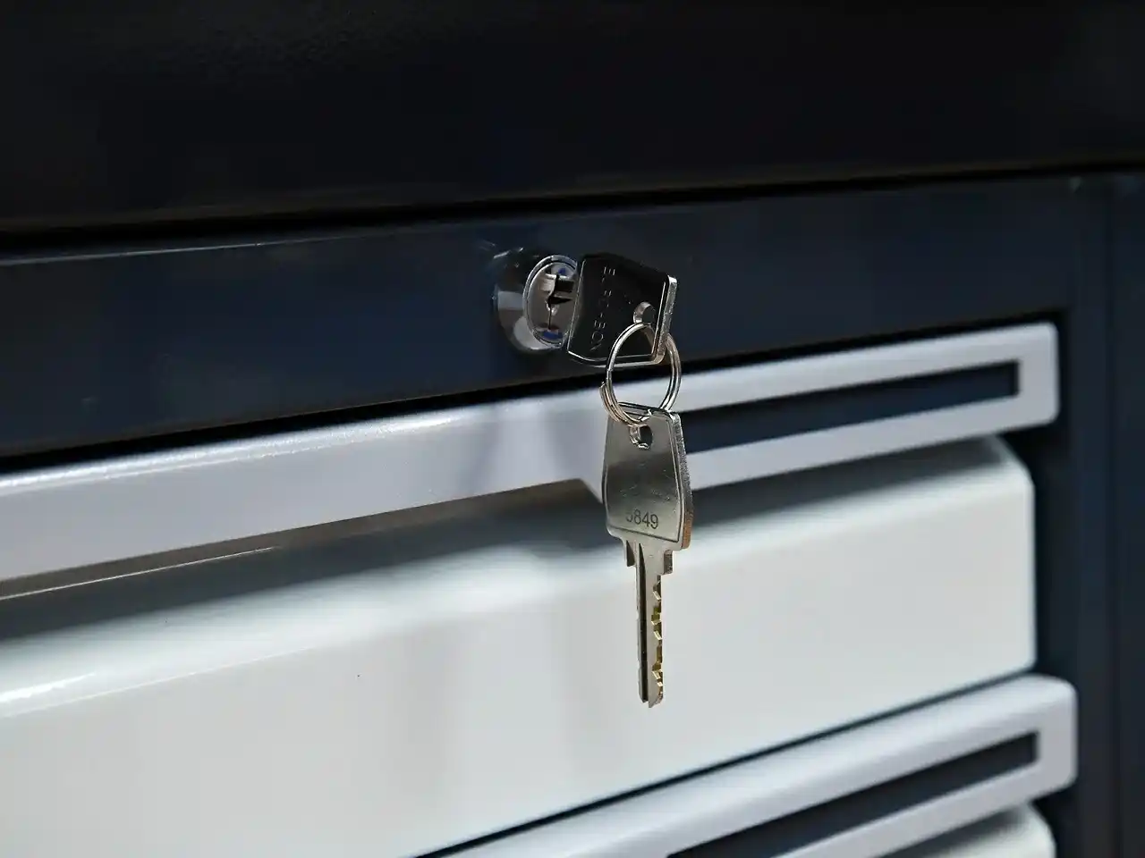 - Модули с ящиками снабжены общим центральным замком с поворотом ригеля 180 градусов и подпружиненной тягой. В комплекте два ключа для каждого замка.