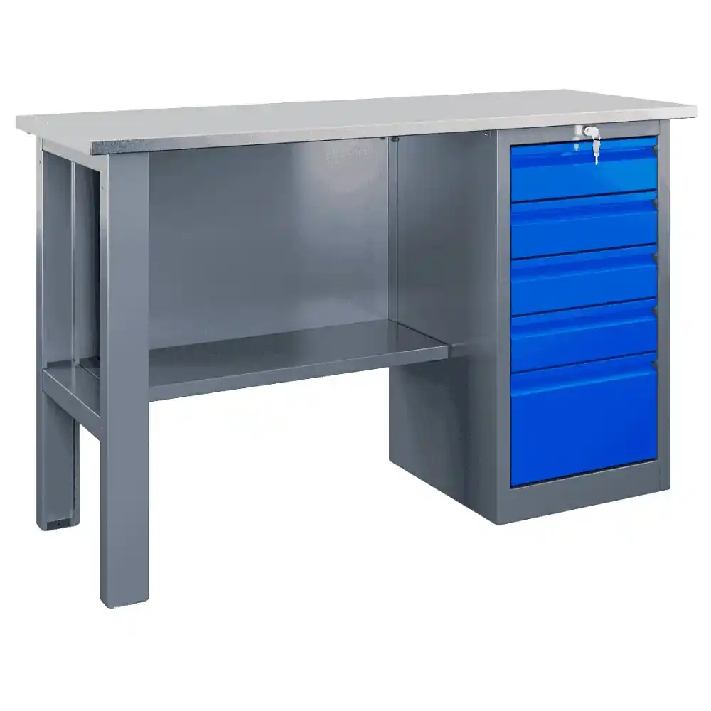 - верстак стоит на опорах, для которых применяется листовой металл,