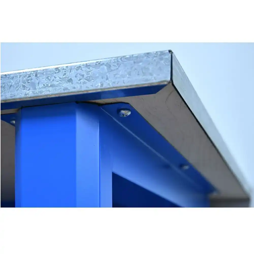 - Верстак комплектуется полкой-стенкой, расположенной под столешницей для удобного размещения габаритного инструмента и оснастки.