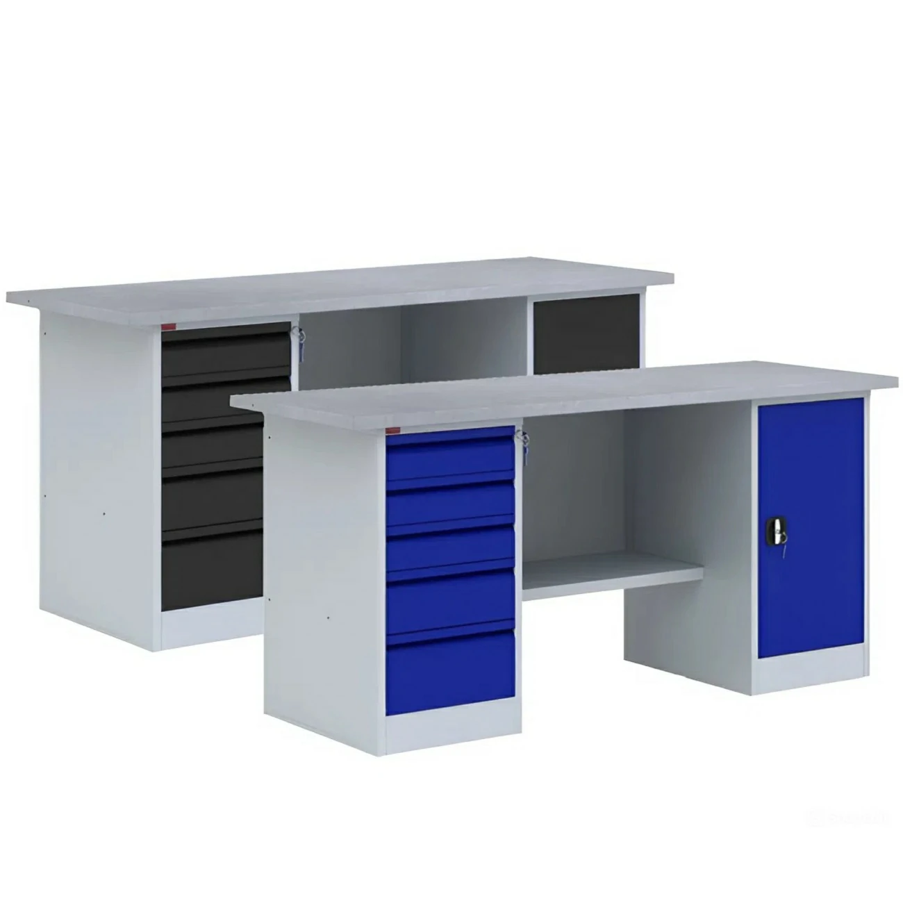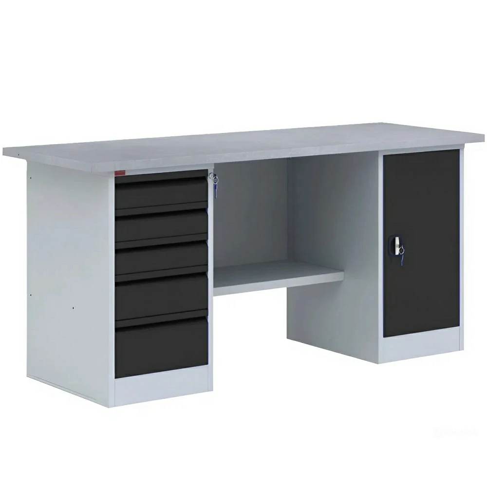 Верстак ВП-4Т, металлический, длина столешницы 1900 мм, с драйверами предназначен для выполнения слесарных работ дома, на крупном производстве, в автомастерской, гараже или учебном классе.
