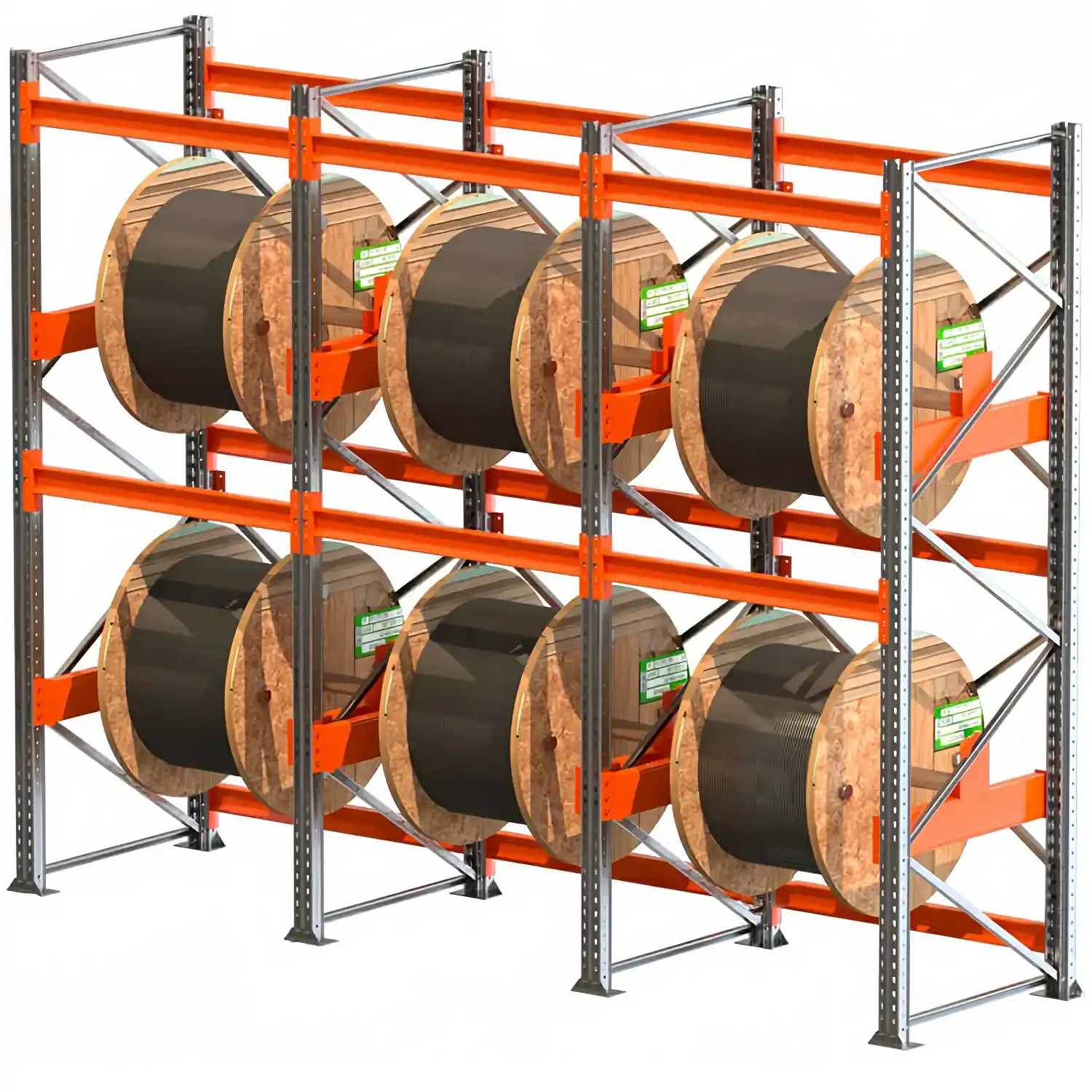 Стеллажи для кабеля – это специализированное стеллажное оборудование, предназначенное для хранения кабельной продукции в бухтах (барабанах), разработанные с учетом количества бухт с кабелем, их размеров и веса.