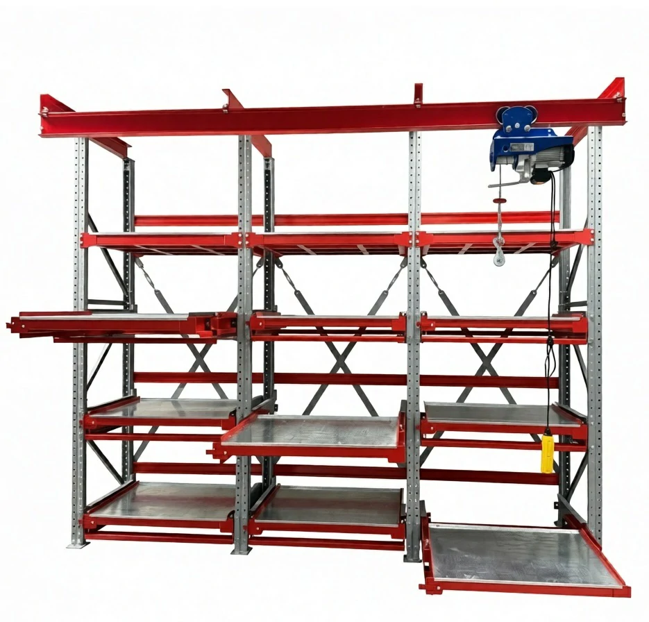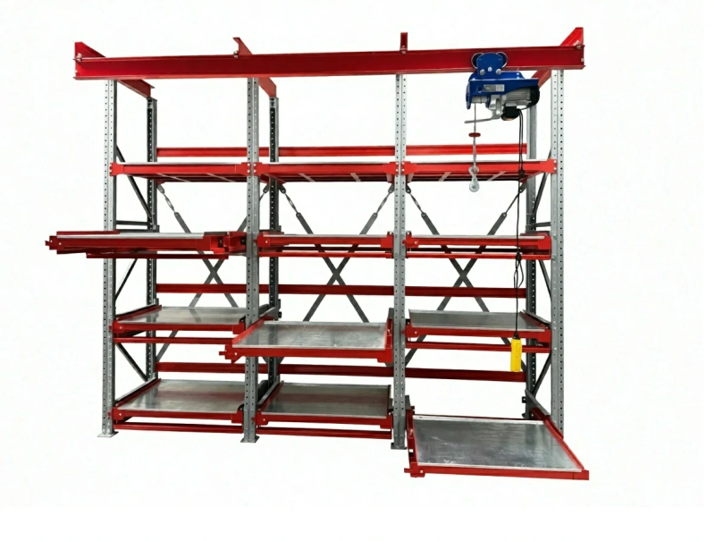 Стеллажи «Слайд» с выкатными платформами - для хранения пресс-форм и штампов литейных форм, оснастки и инструмента, других тяжелых грузов и/или оборудования в цехах и производственных помещениях.
